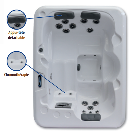 • 19 jets inox d'hydromassage