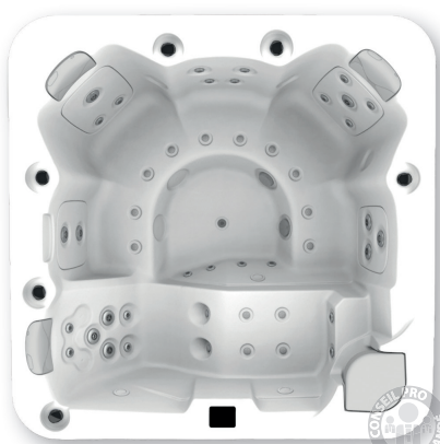 • 28 jets inox d'hydromassage + 16 jets inox d'aéromassage